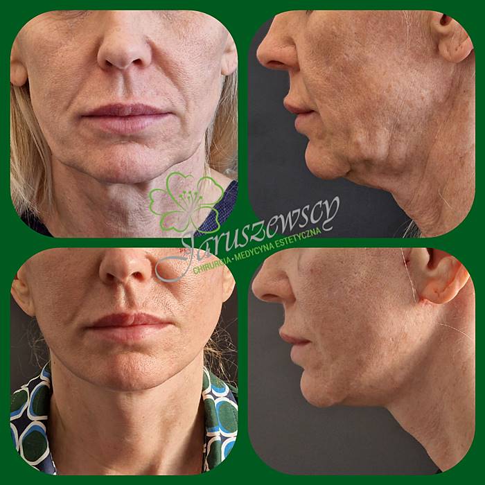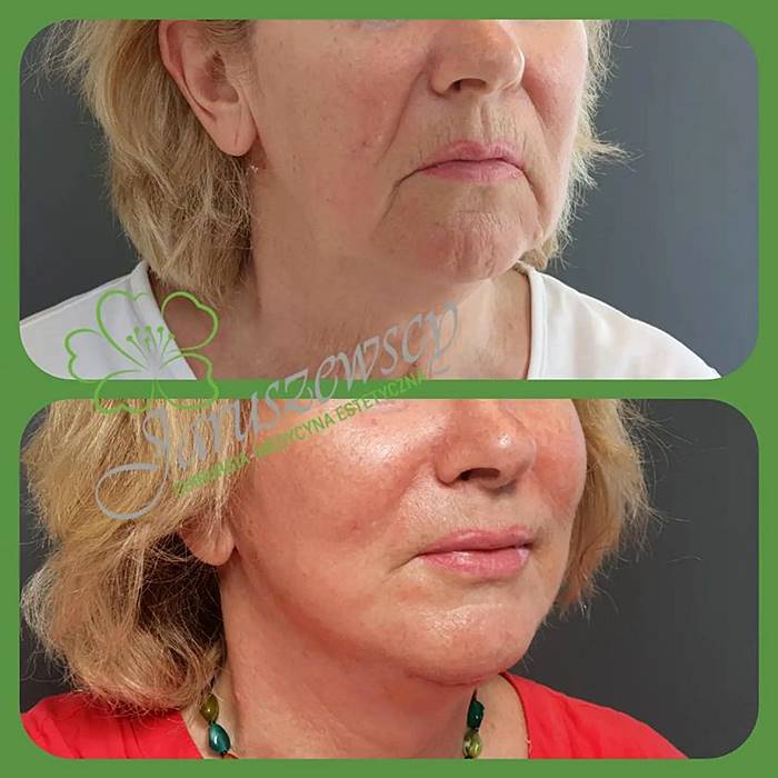 Zabieg redukuje zwiotczałą skórę, podkreślając linię żuchwy i szyi, co przyczynia się do odświeżenia i odmłodzenia całego wyglądu.